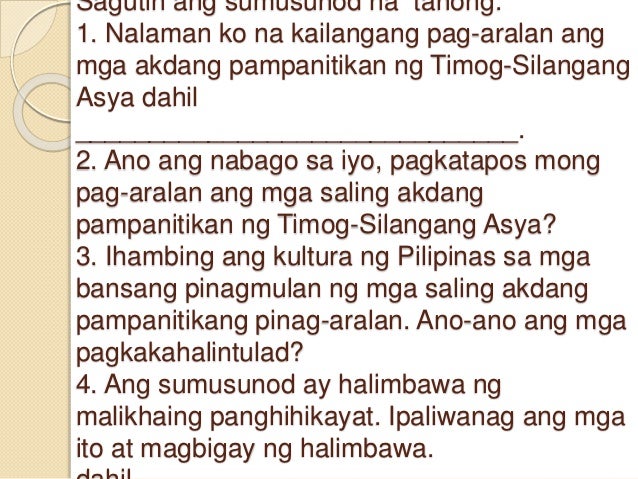 Isa pa ay makapagbibigay ng kaunawaan sa mga mamamayan ang ibat ibang kulturang bumubuo at. 1 See answer. Matatagpuan din dito ang mga mauunlad na bansa gaya ng Japan Taiwan South Korea at Singapore.