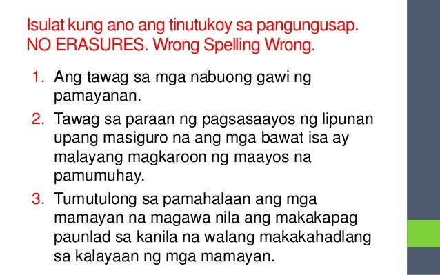 INTERES Kailangang maging malinaw ang layunin o hangarin hindi lamang ng isang indibidwal kundi maging ng buong pamayanan. Ang mga salawikain kawikaan kasabihan wikain o sawikain ay mga maiiksing pangungusap na lubhang makahulugan at naglalayong magbigay patnubay sa ating pang-araw-araw na pamumuhay. New questions in Filipino.