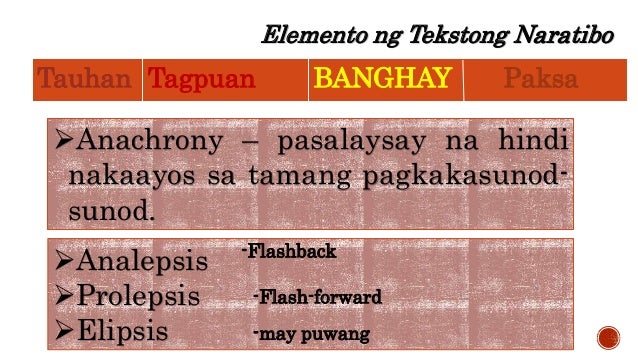 Elemento ng Tekstong Naratibo Tauhan Tagpuan Banghay PAKSA Ideya kung saan umiikot ang pangyayari. Kaya huwag naying sayangin ang mga pagkakataon para pag-aralan ang ibat ibang uri ng teksto gaya ng persuweysib prosidyural naratibo at argumentatibo dahil napakahalaga ang mga ito para natuto tayong magsalaysay ng maayos at mangumbinsi sa nga. Mahalaga ang interaksiyon sa pagitan ng teksto at mambabasa na hinuhulma ng mga paniniwala kaalaman at karanasan ng mambabasa at ng kultural at panlipunang tekstong kinalalagyan niya.