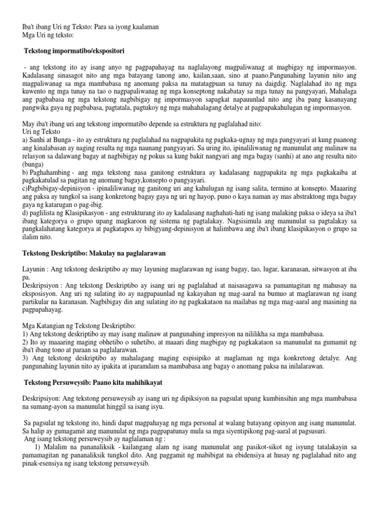 Teksto At Ang Mga Uri Nito Pdf