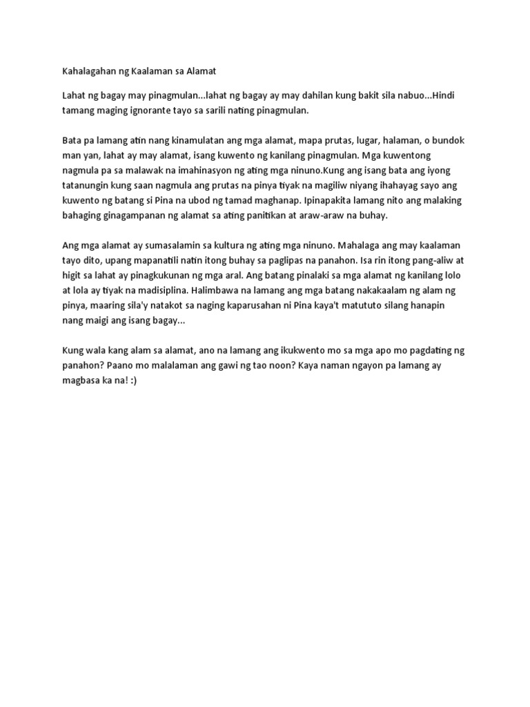 Kahalagahan Ng Kaalaman Sa Alamat