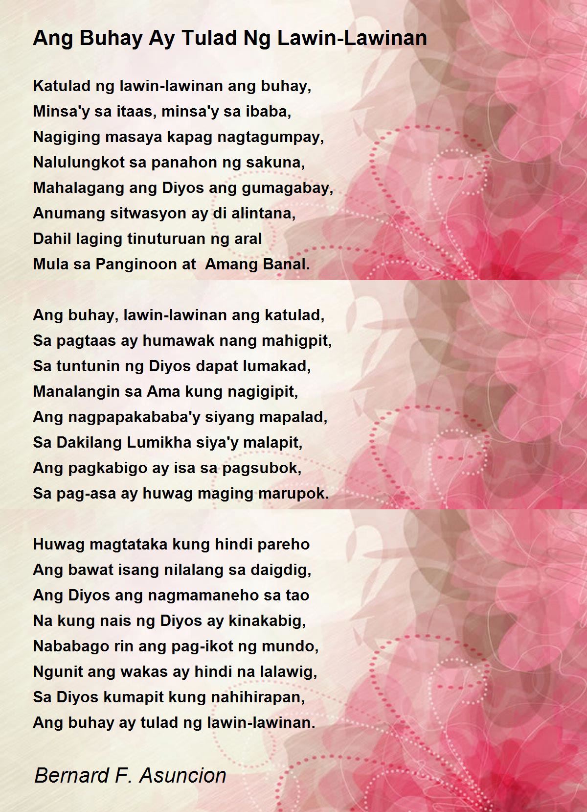 Buhay mahalaga poetry. Mahal niya ang buhay natin. Magsimula ka sa wala. Bigyan ng tuon ang pagtupad sa mga itinakdang mithiin sa buhayc.